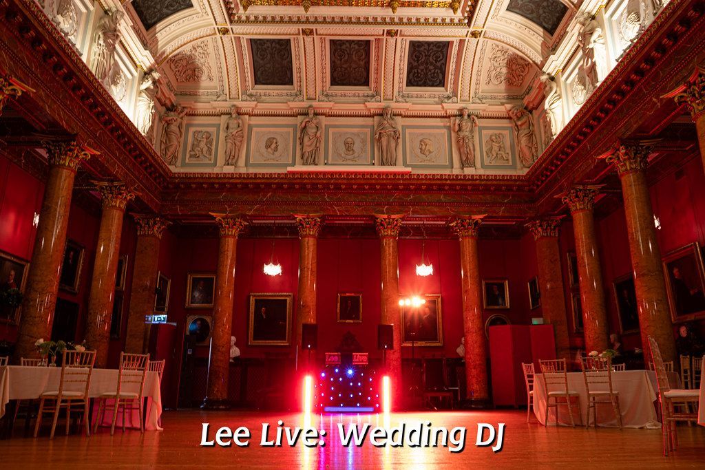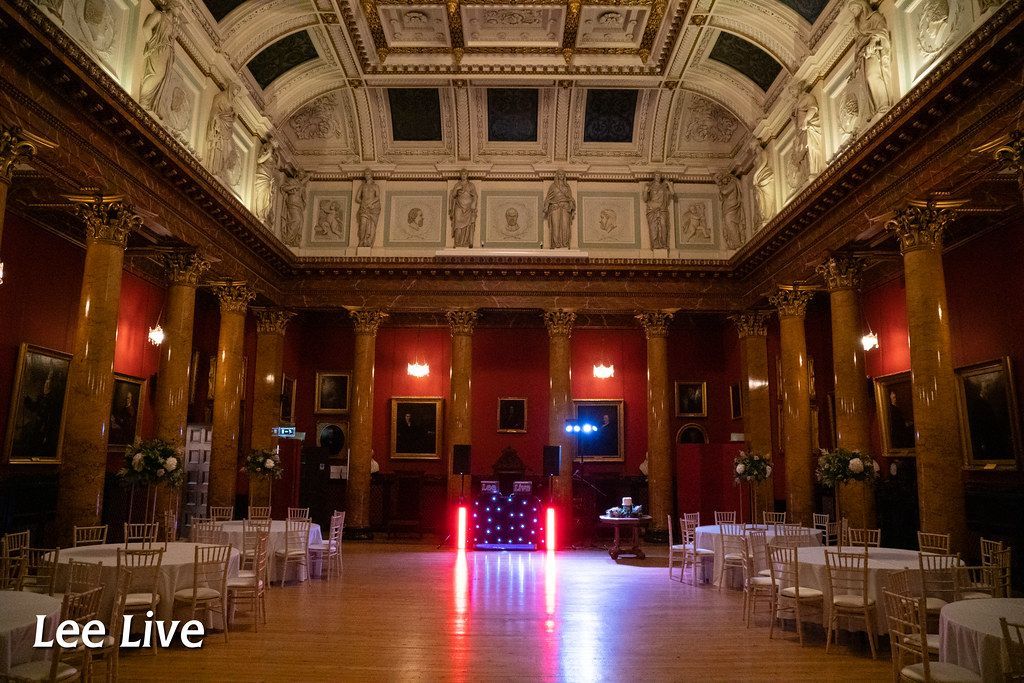 As night falls, the venue transforms into an intimate and atmospheric party space. The proportions of the main rooms work particularly well for evening dancing, creating a lively atmosphere without the space feeling overwhelming. With thoughtful lighting and a well-positioned DJ setup, the classical surroundings take on a warmer, more celebratory feel. Having DJed weddings here as Lee Live: Wedding DJ, I’ve found guests often respond enthusiastically to the contrast between the formal daytime setting and the relaxed, joyful evening celebration.